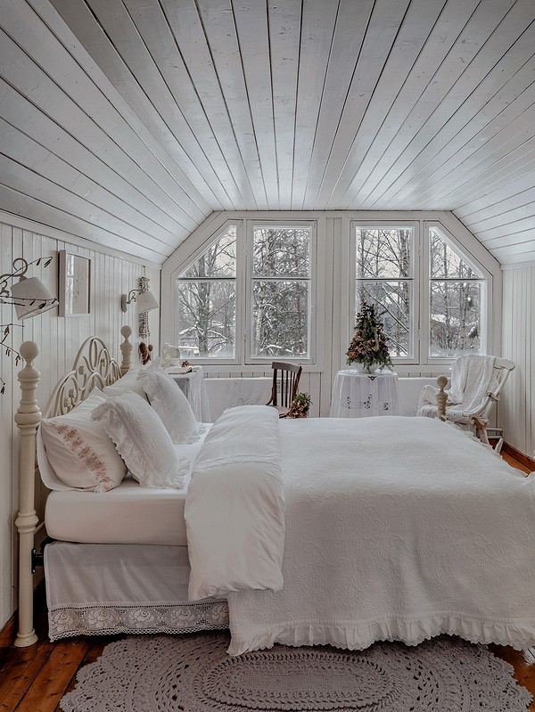Для скандинавского стиля характерна естественная отделка, использование дерева, белого цвета и натуральных оттенков. Светлые стены и простой декор не перегрузят комнаты и сделают их визуально просторнее. Это видно на фото внутри деревянного дома.