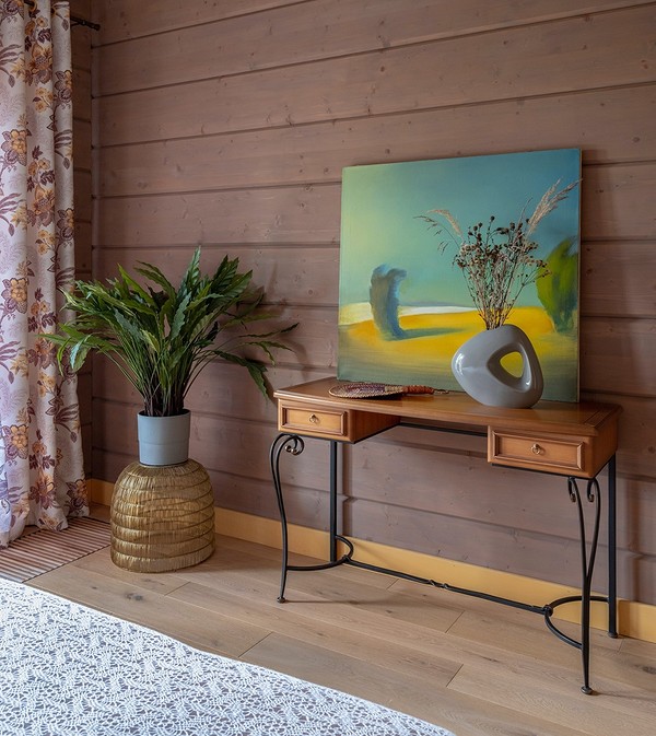 Давайте рассмотрим, как лучше оформить интерьер комнат в деревянном доме картинами.