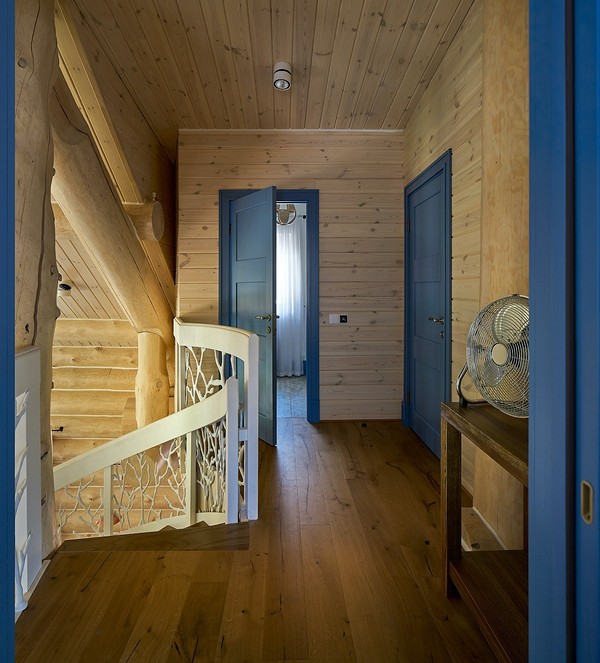 Потолки можно покрыть лаком и оставить в естественном виде, но если дизайн помещения не позволяет сохранить фактуру поверхностей, рекомендуется покрасить потолок универсальной белой краской. Покраске и лакировке подлежат также двери, окна и оконные рамы, но при покраске дверных проемов учитывается стиль помещения. В некоторых случаях достаточно покрыть дверь обычным прочным лаком.