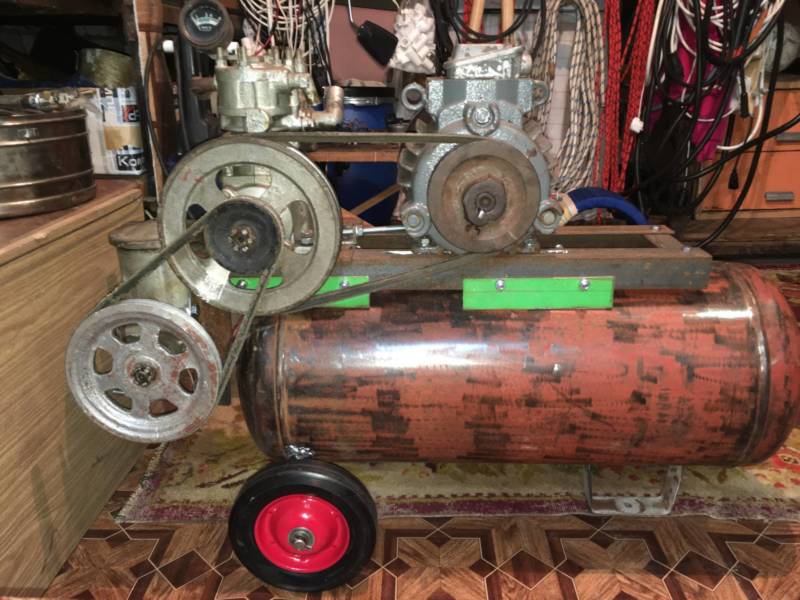 Для работы с пневмоинструментом мастера изготавливают воздушный компрессор своими руками. Агрегаты этого типа выполнены на базе двигателя и компрессора от грузовика ЗИЛ. Следует учитывать, что такое устройство во время работы издает много шума.