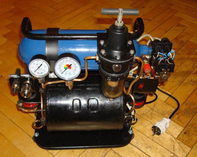 Для различных работ в помещениях с ограниченной площадью наиболее приемлемым вариантом является агрегат на 220 В, монтируемый самостоятельно. Преимуществом таких электрокомпрессоров является низкий уровень шума.