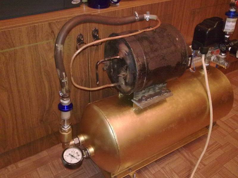 Залогом успеха в создании надежного и практичного компрессора для краски станет покупка прочного ресивера. Мотор от бытового холодильника для устройства для этой цели не подходит. Оптимальный вариант – автомобильный компрессор и электродвигатель на 220 В.