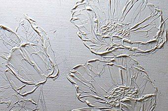 Рельеф формируют специальные наполнители. Производители предлагают уже готовую водорастворимую краску обычно белого цвета.